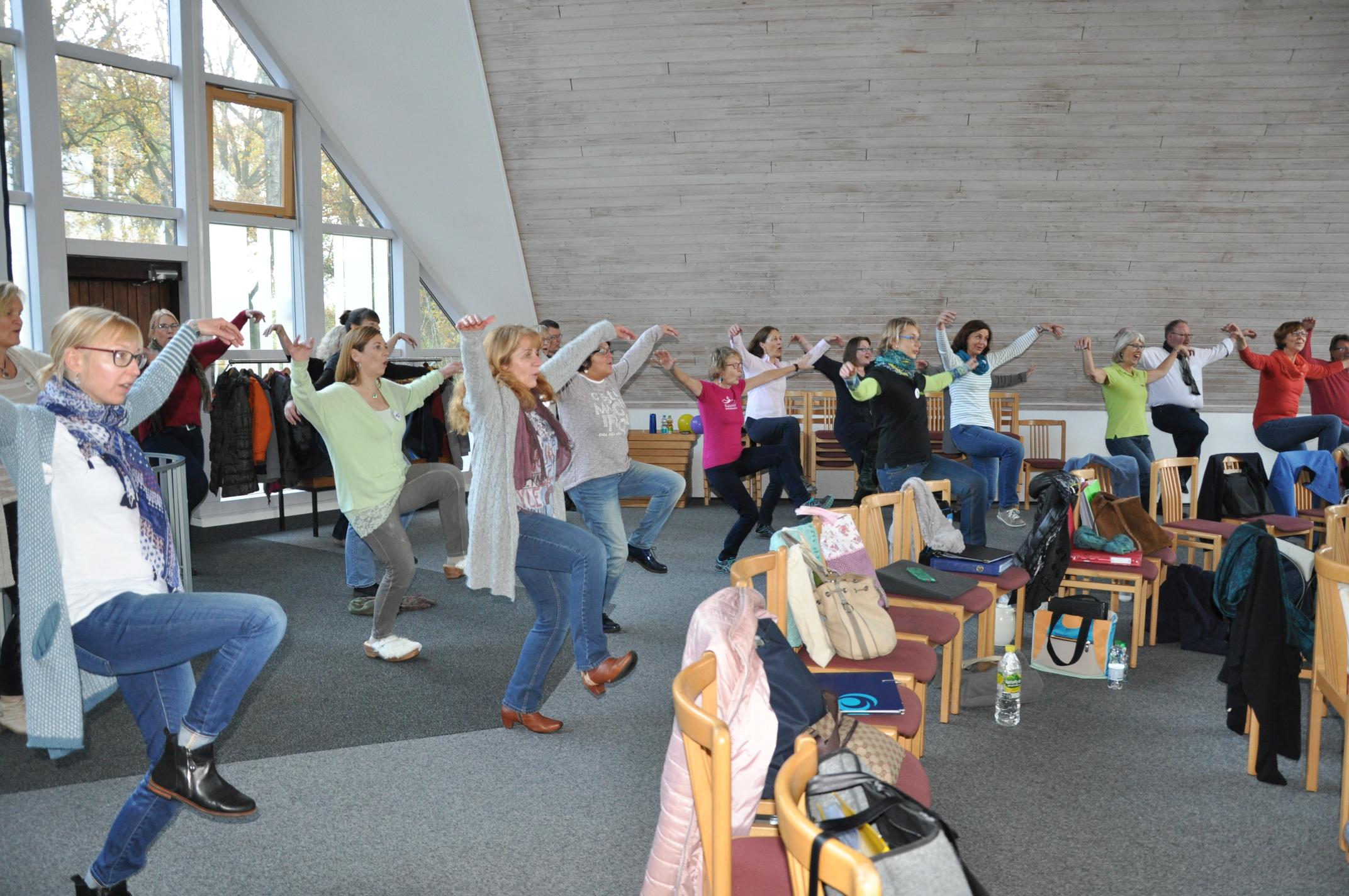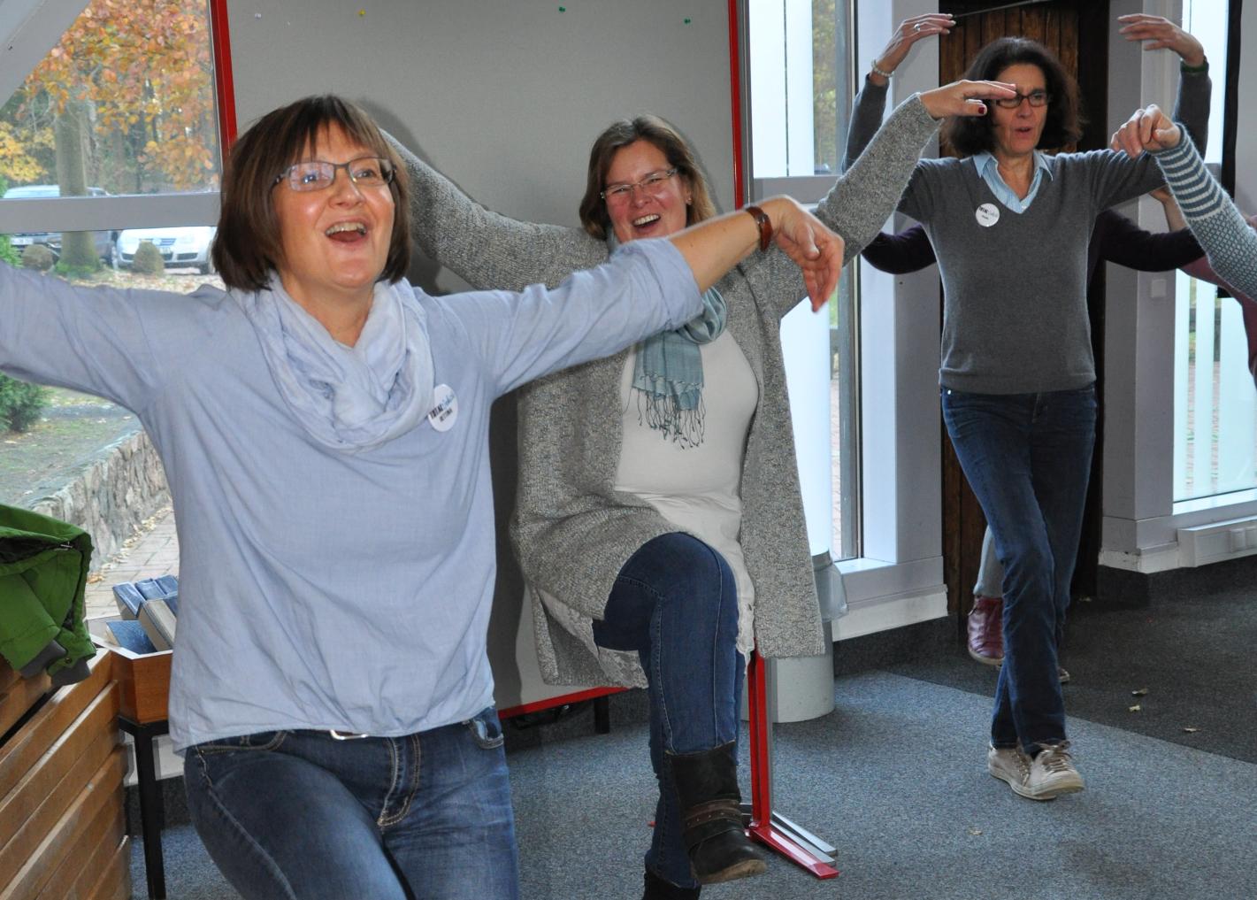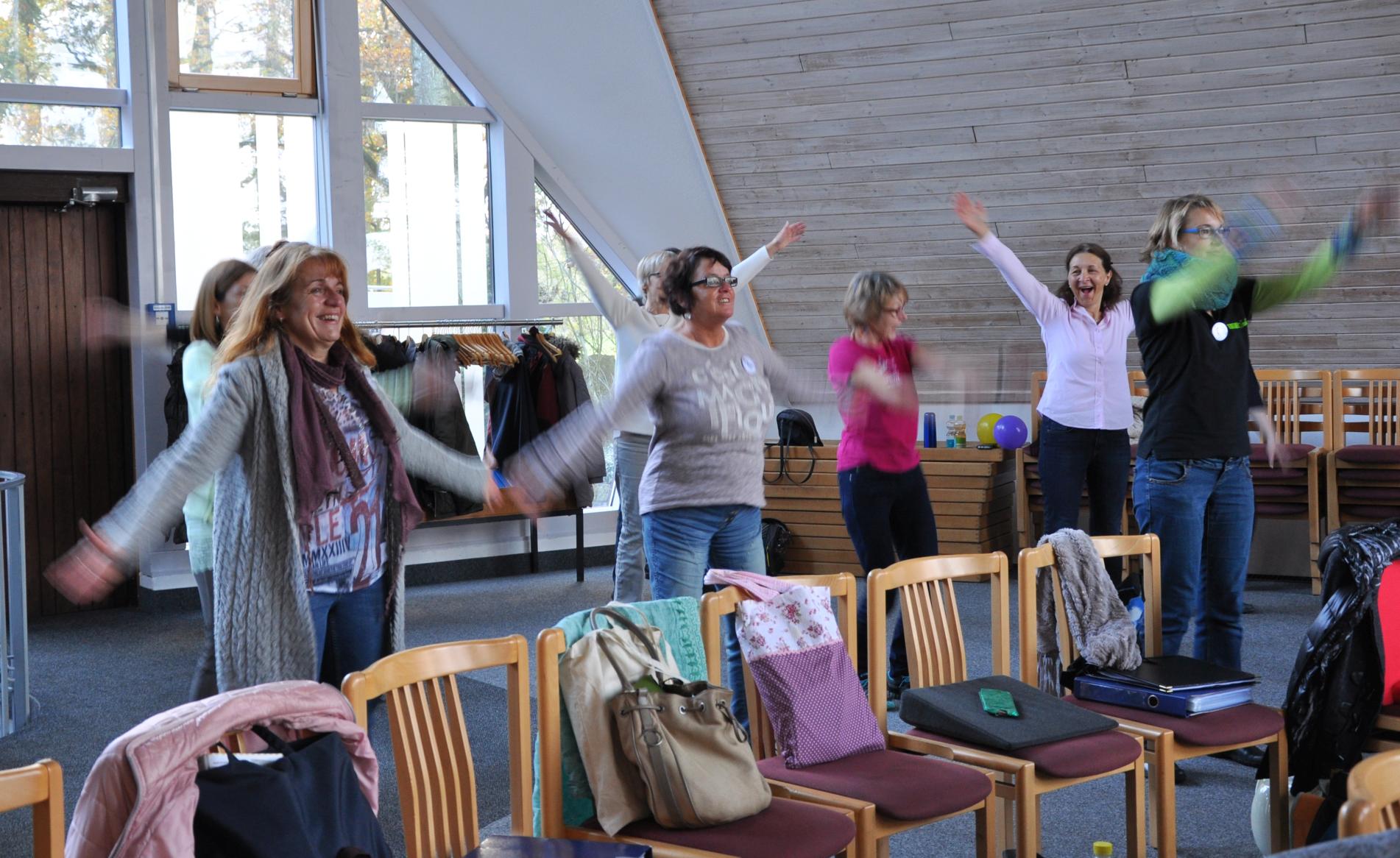 Die Proben-Einheiten starteten natürlich mit den allseits beliebten Körperübungen und dem Einsingen - das macht Spaß, wie man auf den Fotos sieht: