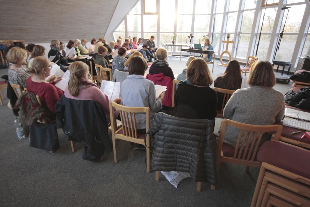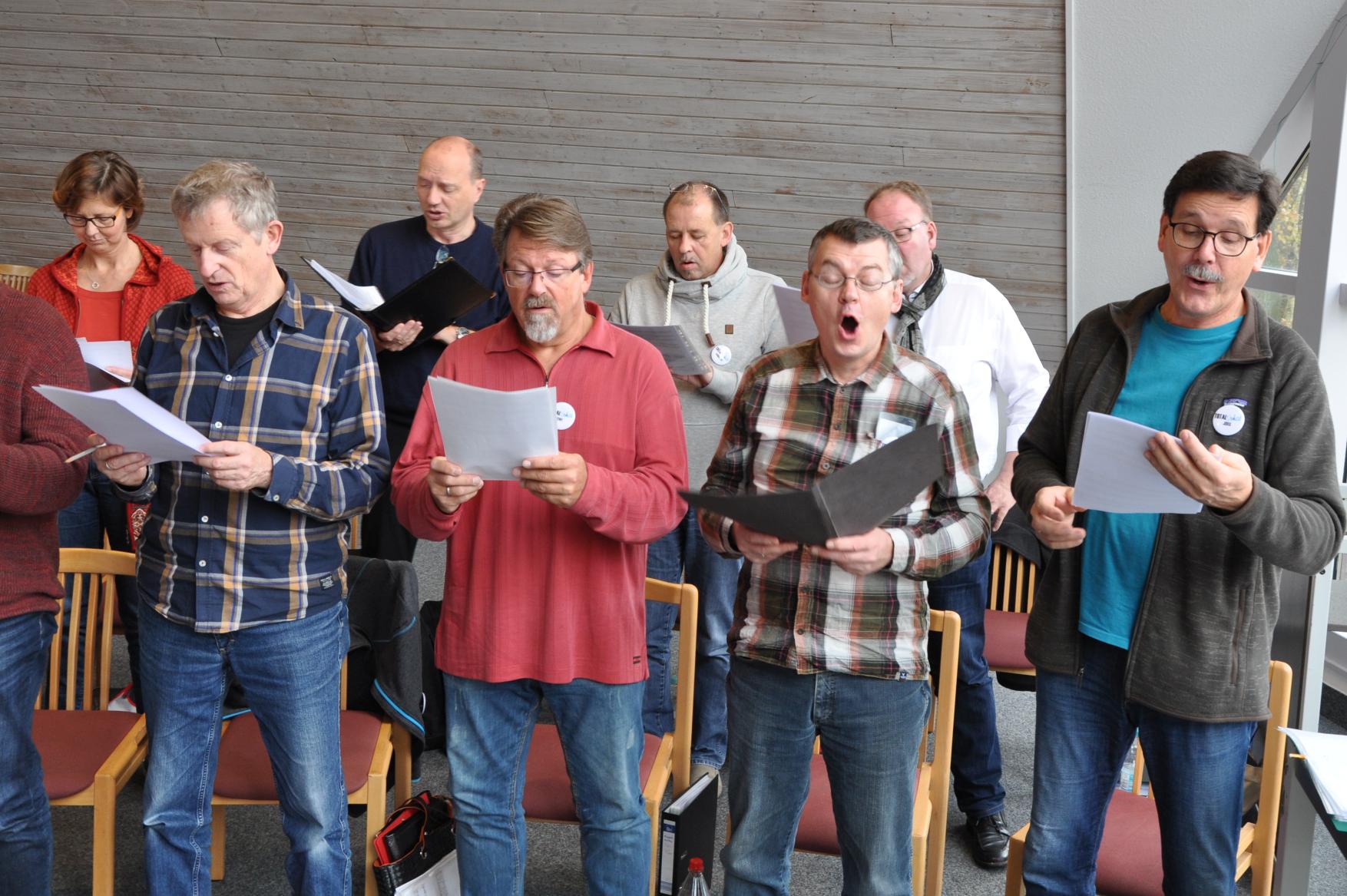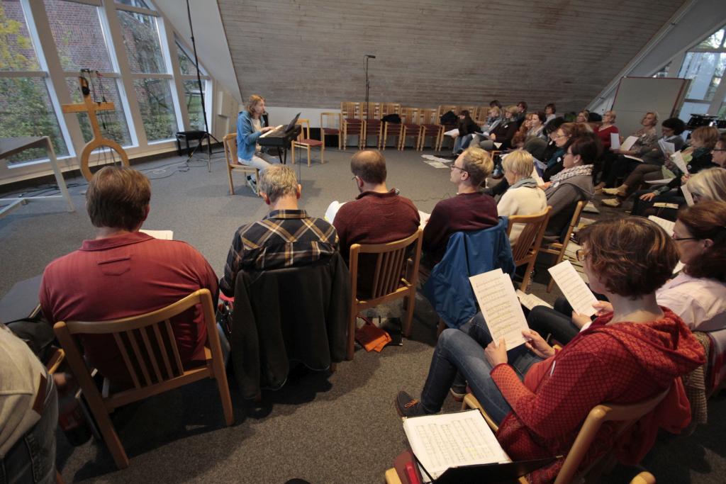 Nach dem Frühstück ging es um viertel nach neun los und es wurde geprobt bis zum Abendessen. Anschließend gab es immer noch Unermüdliche, die in kleinen Stimm-Gruppen schwierige Passagen übten (und man glaubt es kaum am Abend krakehlten alle lautstark zur Klampfe!!!).