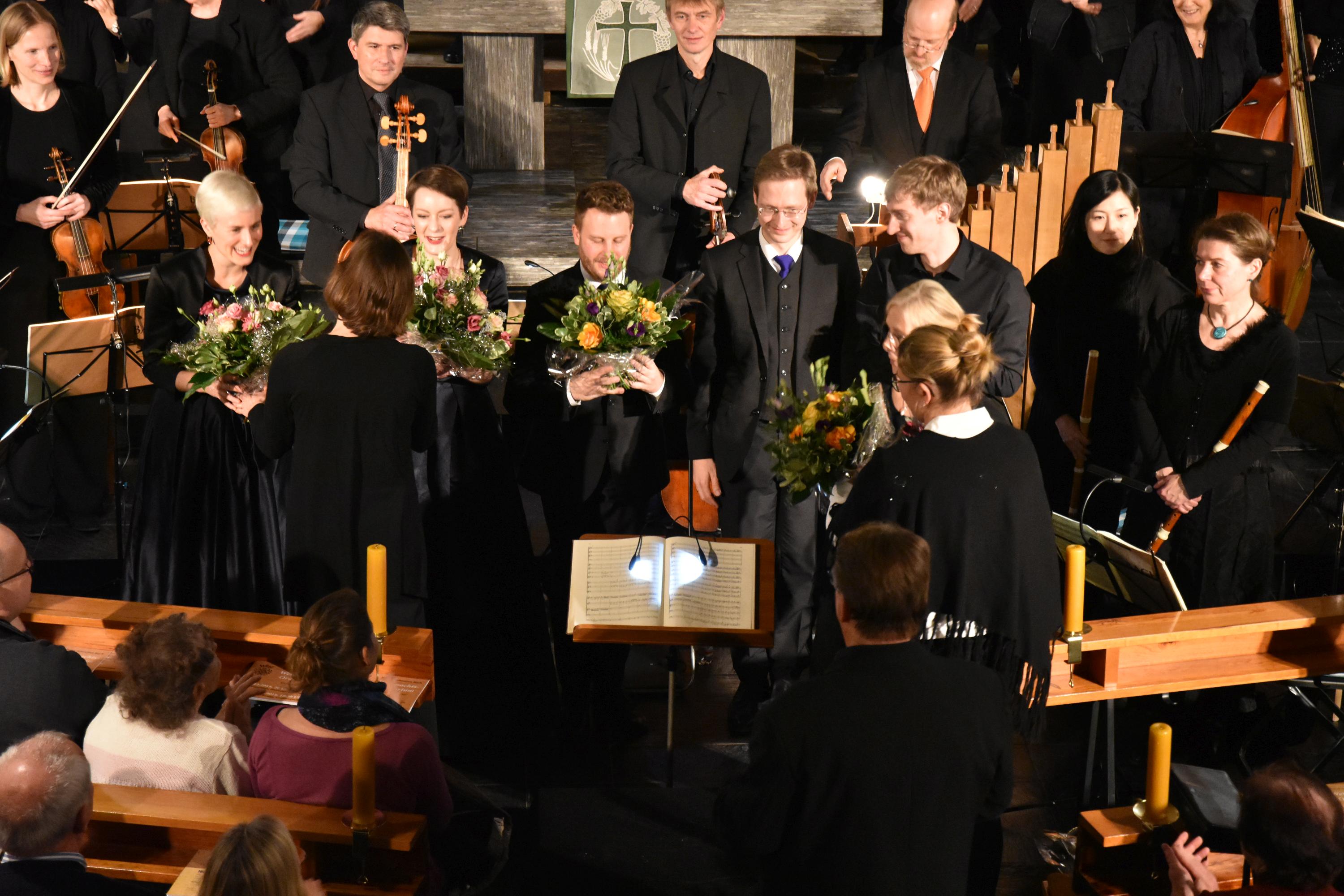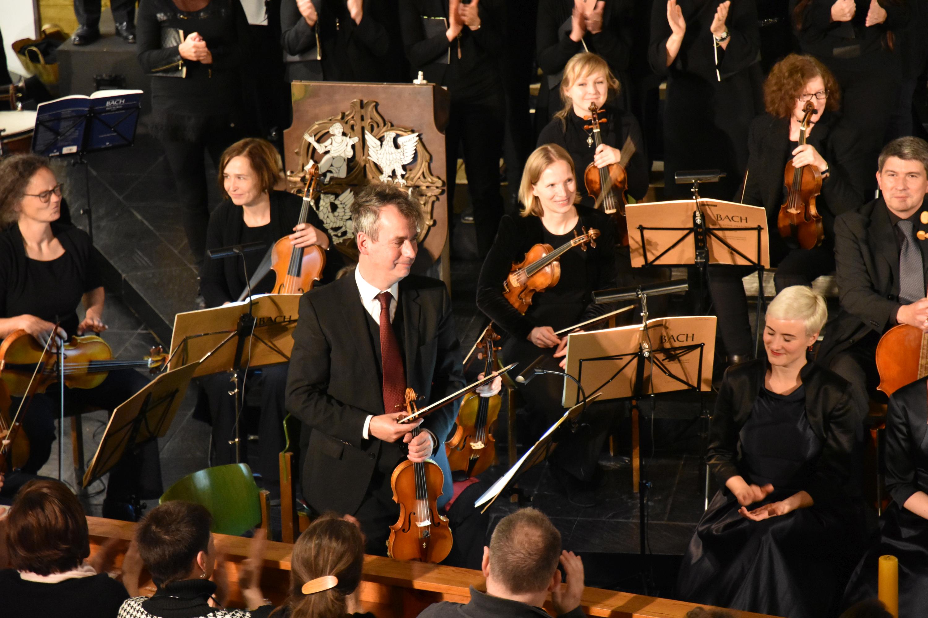 Die letzten Bilder zeigen den Applaus für den Konzertmeister und für Silas Bredemeier, den Chorleiter von beiden beteiligten Chören und Dirigenten der beiden Aufführungen.